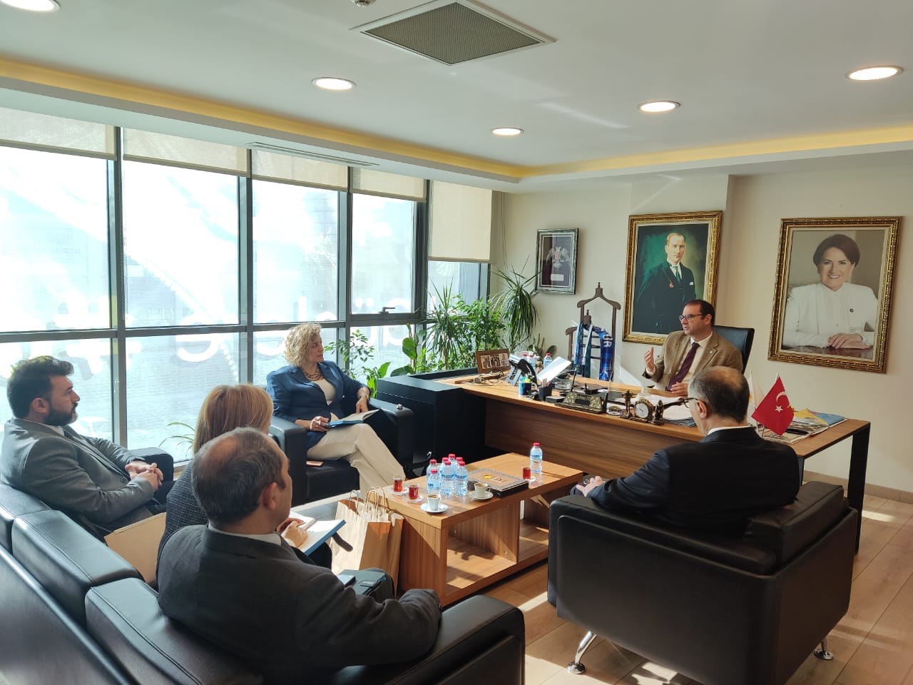 Başqanlıq Heyətinin üzvləri Aqil Dadaşzadə, Vasif İsmayıl, Rəşad Bakuvi, Aynur Qəzənfərqızı və Gülşən Hacıyeva bu gün Ankarada İYİ Partiya Başqanının Türk Dünyası ilə əlaqələr üzrə müavini Rıdvan Uzla bir araya gəlib.